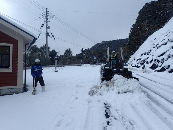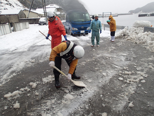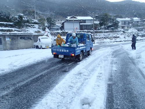 奈良尾地区の融雪作業を大宝建設㈱社員総出で行いました。