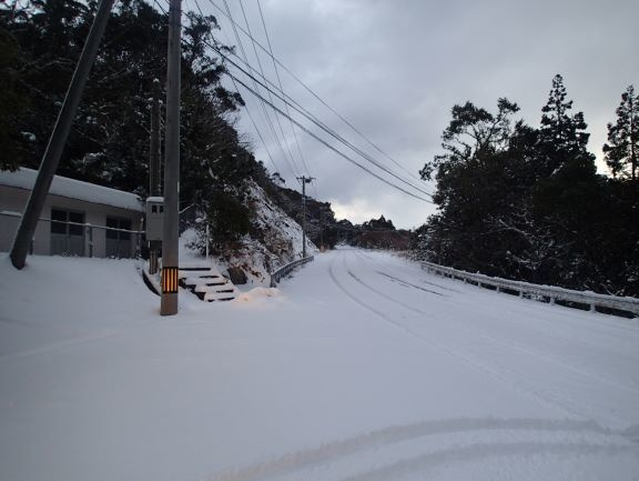 県道有川奈良尾線 浜串~神ノ浦です。15センチの積雪です。