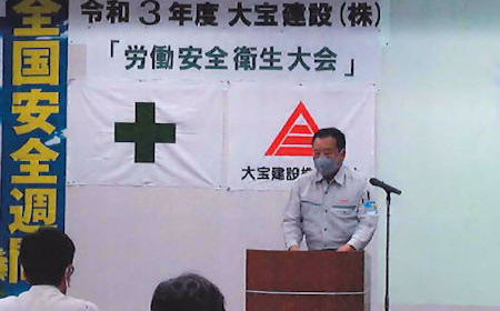 我々は、この安全期間を契機として自分の体は自分で守るという安全の基本をあらためて認識し、一人ひとりが安全な作業を心がけ、私たちの会社で、私たちの作業所で災害事故を絶対おこさないよう一層努力することを誓います。
