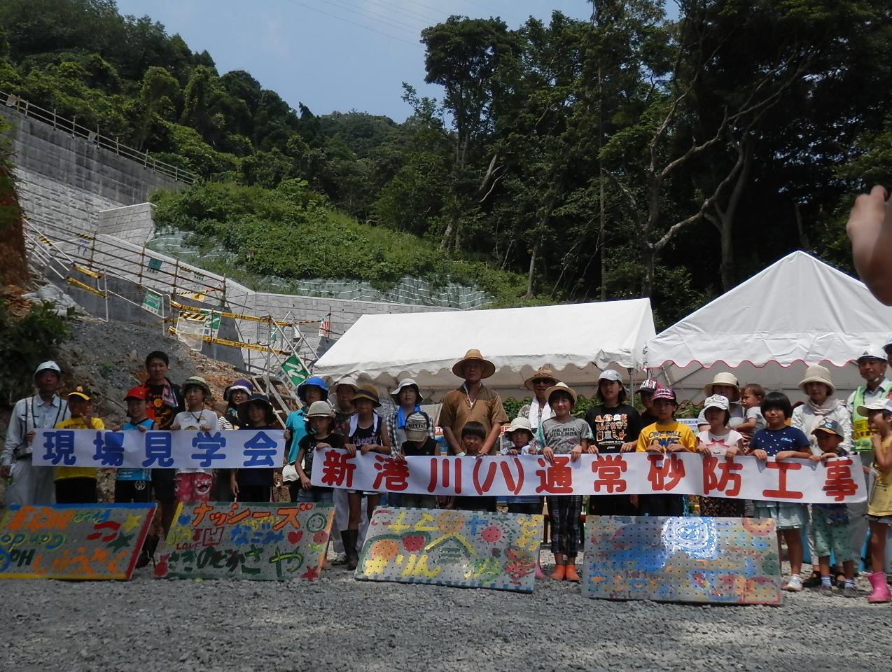 新港川(ハ)通常砂防工事現場にて、親と子の見学会を開催しました