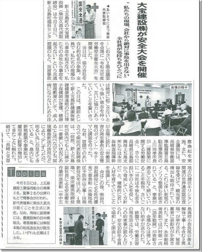 長崎県労働基準監督署五島駐在事務所 上川所長(左写真)と長崎県五島振興局上五島支所本田検査指導幹(下右写真)をお招きし、安全についての意識向上についてご講壇いただきました。