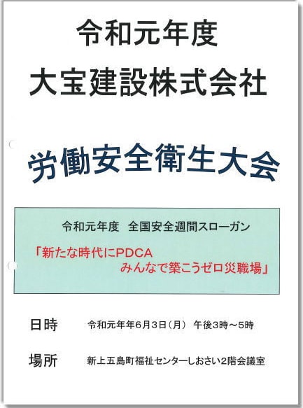 ら6月30日迄を準備期間とし、7月1日から始まる全国安全週間は、労働災害のない安全で働きやすい職場をつくるための全国安全週間であります。