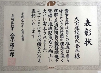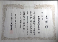 当社は、自らの地域は自ら守るという消防団の理念を深く理解し消防団員の職務環境を整備し地域防災力の向上に寄与した功績が評価されました