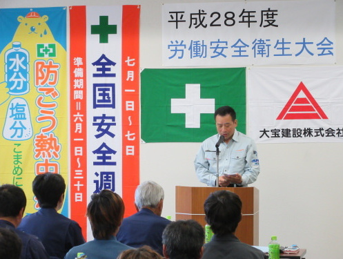 我々は、この安全期間を契機として自分の体は自分で守るという安全の基本をあらためて認識し、一人ひとりが安全な作業を心がけ、私たちの会社で、私たちの作業所で災害事故を絶対おこさないよう一層努力することを誓います。